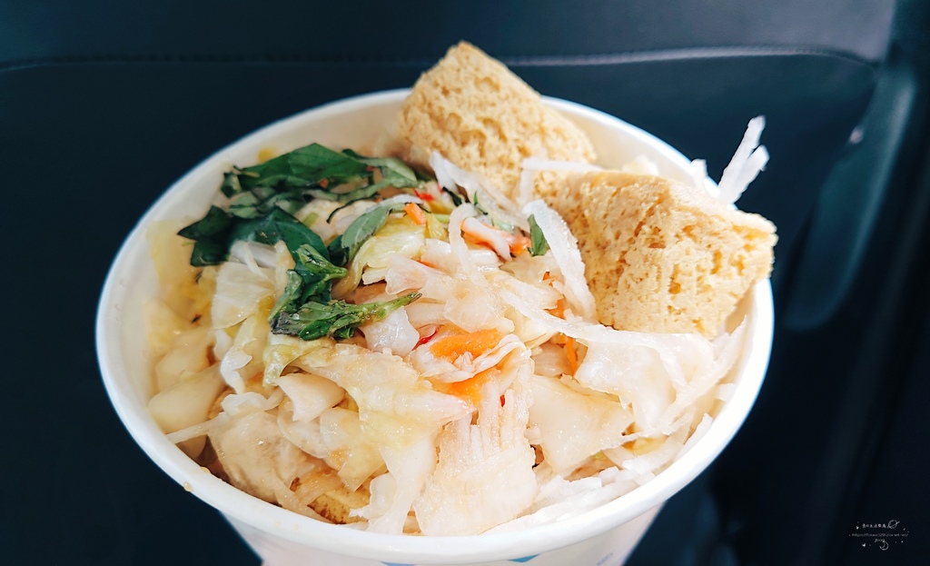 玉里臭豆腐多汁又超多配料,有蘿蔔絲、九層塔、紅蘿蔔、泡菜等滿滿內餡層次感超豐富
