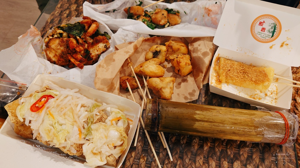 玉里臭豆腐多汁又脆口、鹹酥雞螃蟹王炸螃蟹醬汁鹹甜入味很刷嘴、原香烤麻糬和紫米竹筒飯